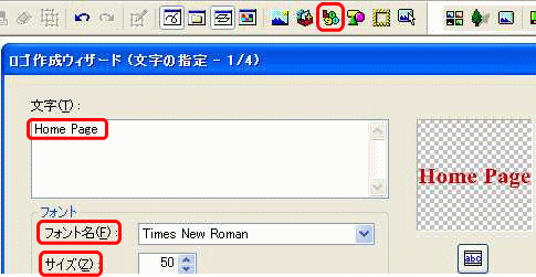 ▼1.メニューバーの「ロゴの作成」を押して、ロゴ作成ウィザードでロゴを作ります。